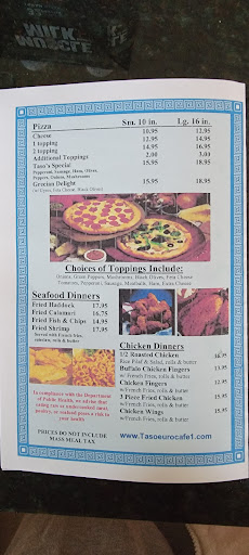 I cannot understand the negative reviews...I have been to Tasos many, many times and have never had anything but polite and helpful service. And the food is wonderful. You wont find better Greek food anywhere. Everything is homemade: all desserts, salad dressing, pizza dough, etc. The souvlakia (chicken or lamb) is wonderful as are the pastitchio, baked lamb, lamb chops, subs, spanokopita, and so on. And afterward, you can stroll over to the airport, sit on a bench and watch planes, helicopters or the Great Blue Hill! Youll love it!
