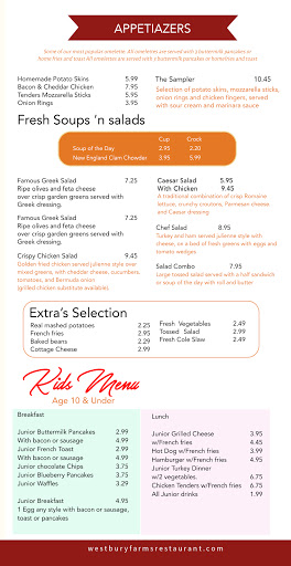 I love Westbury Farms, good food at a decent price. The staff is friendly and efficient.