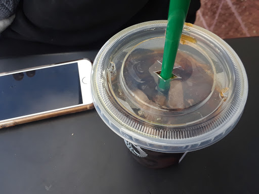 Drink took a long time, lots of annoyed people waiting. There were also few tables, and one was used to shape the line and awkward to sit at, so there was no place to sit.
