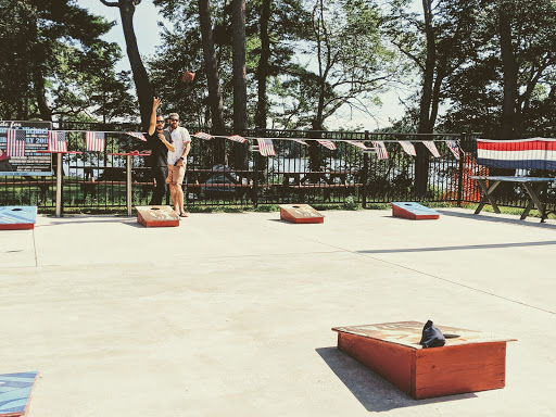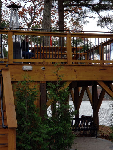 Great atmosphere. Love that there is cornhole (baggo) or back behind the patio. Great view of the lake and fun place to hang out during the summer.