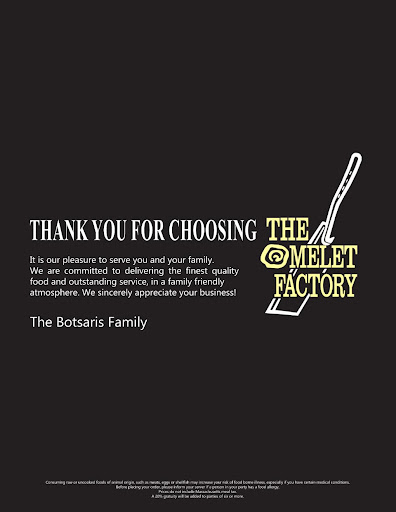 Very expansive and unique omelette selection and excellent customer service.