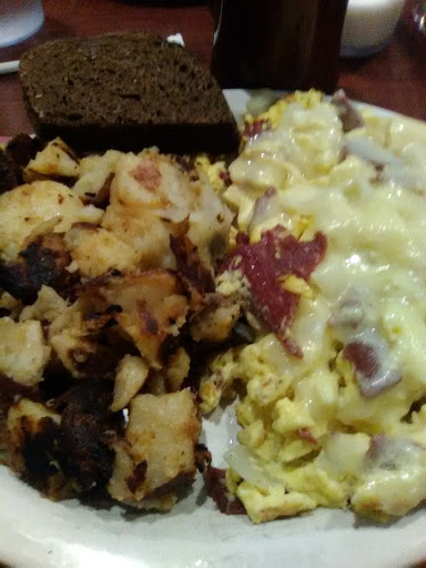 So far, so good. Awesome steak and cheese omelette, awesome pancakes!