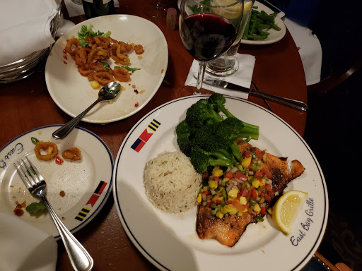 We went there on Sunday night around 630pm. The wait for a table on the deck (which offers excellent views of Plymouth Harbor) was around 30 minutes so we went to the bar and, because I was somewhat short on time, decided to eat there. Food was excellent...We started off splitting a Caesar Salad which was plenty big enough for two; it was excellent! For our entrees, I had the Chicken Marsala and my companion had the Linguini and Clams....both were excellent in terms of quality and quantity. The only downside was the music was a bit loud, but we will definitely return.