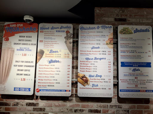 The prices at Fuddruckers might seem high, but when my friend and I saw the size of her taco salad, my chicken sandwich, and our shakes (which came in a glass *plus* the metal shake maker cup), we knew we wouldnt be able to finish it! We could have split any one of these items and been very satisfied. As it was, we enjoyed the food so much that we ate more than we should have :) The Oreo shake was particularly good (better than the strawberry). Our dinners were ready very quickly, and our shakes were brought to us before we were even done getting our silverware. The server was very friendly as well.