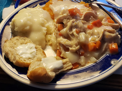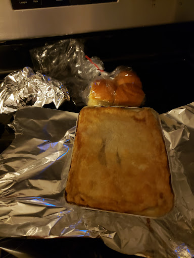 Great chicken pot pie and dinner rolls