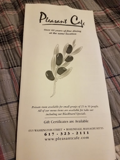 The Pleasant Cafe is a Roslindale GEM. DEEE-licious pizza. Enormous, fresh antipastos. Long live the Pleasant!!