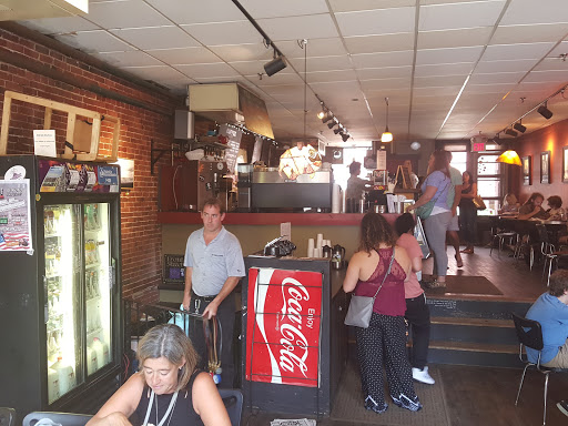NICE FUNCTIONAL COFFEE HOUSE GREAT TASTING COFFEE FAST PACED ENVIRONMENT LOTS OF LOCAL ARTISTS PAINTINGS ON THE WALL OUT DOOR SEATING ON THE SIDEWALK NEEDS HELP WITH CAPPUCCINO MAKING PROPER STEAMING OF MILK NOT ENOUGH COFFEE MAKES FOR A POOR PRODUCT NEED TO GET TRAINING FOR LATTE AND CAPPUCCINO MAKING BUT OUR SALADS WERE FANTASTIC . LATTES AND CAPPUCCINO ARE NOT THE SAME NEEDS DEDICATED BARISTA TRAINED PROPERLY THEN THEY GOT THE WORKS