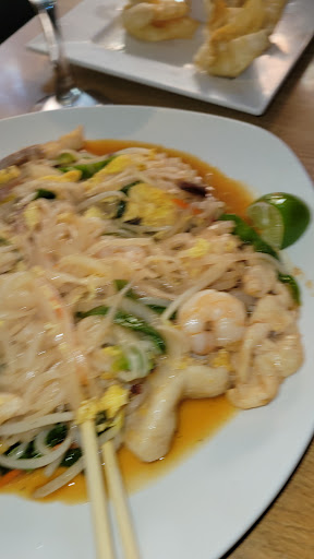 Went with a friend, I ordered the (completely forgettable) pad thai and she got some (very bleh) sushi. I found a piece of a wire pan scrubber in my food, I brought it to the attention of my server. She apologized, took my plate away, and then brought me a pretty poorly made deep fried ice cream that I didnt really want. I appreciated the gesture, but it would have been nicer to choose something instead of given a deep fried lump of vanilla ice cream covered in thick batter. They also gave me a 15% discount on my food, which, again, was nice but seems pretty stingy for finding a sharp piece of metal inside my mouth. Wont be returning.