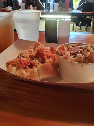We had the fired calamari, pulled pork, and steak tips. The calamari was excellent. It had the perfect amount of seasoning, and cooked perfectly. It wasnt overly dry or soaked in oil. The steak tips we amazing as always. Large chunks of bacon in the spinach, it was great. The pulled pork was really good, but it was more on the sweat side. We also had a lobstertini and a perfect storm for drinks. The lobstertini was interesting, but good. The wait staff was attentive and polite. They finished their back deck, so they had outside seating and a live band, but we sat inside. Would definitely return..