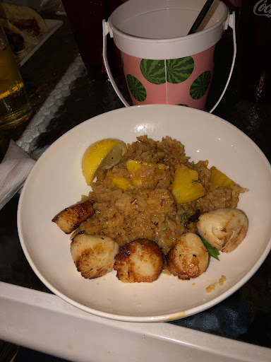 Service was a little slow when we sat down. Waiting wasnt too bad as the day and the view were perfect. Was our server acknowledged us, things were top notch. We started with the Fried Calamari as as an appetizer. The were very good. For dinner, we had the shrimp tacos and the fish tacos. Both were outstanding! Great food, cold adult beverages, beautiful weather, and an outstanding view equals an excellent dining experience. We will be back!