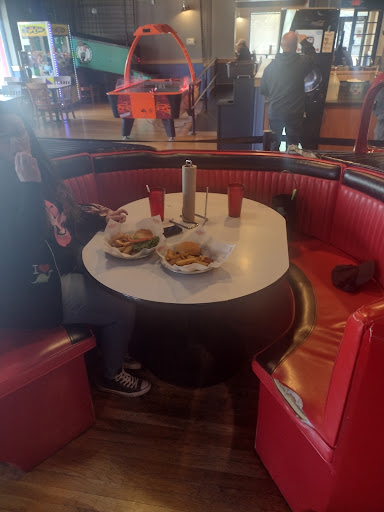 A bit overpriced but the food is good. Milkshakes are awesome! The bun is good just a little to thick. Games for the kids to play. One old car for people to sit in.