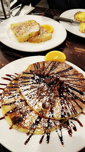 Tons of great breakfast specials like cinnamon french toast, Almond Joy pancakes, Greek Benedict, guacamole bacon benedict, etc. Service was warm, friendly, andv super efficient with an Italian accent.