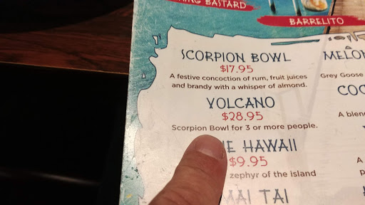 The absolute worst service we have ever had!!! The server acted as if every thing you asked for was a hassle. Sighing after asking for a substitution, bringing the wrong food out, and getting upset w us for asking for a drink menu... I could honestly go on abput what a horrible server he was, but Id rather mention to save yourself the trip, because the food was worst than the service!!! Four of us ordered a Pu Pu Platter, which was in itself lackluster, along with some Crab Rangoons w absolutely no flavor, an order of Lo-Mein which had more vegatable, than meat, and noodles(after ordering no vegatable in it) and watered down Scorpion Bowl for two. The bill came up to $104, with a very reluctantly placed tip, the meal ended up being the worst $120 I ever remember spending in my entire life(No exaggeration)!!! Save your money, save your gas, save yourself from an absolute disappointment!!! DONT BE FOOLED BY THE COOL LOOKING RESTERAUNT...