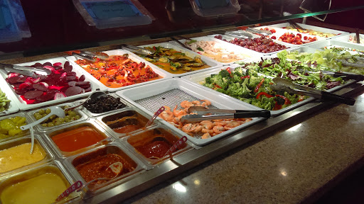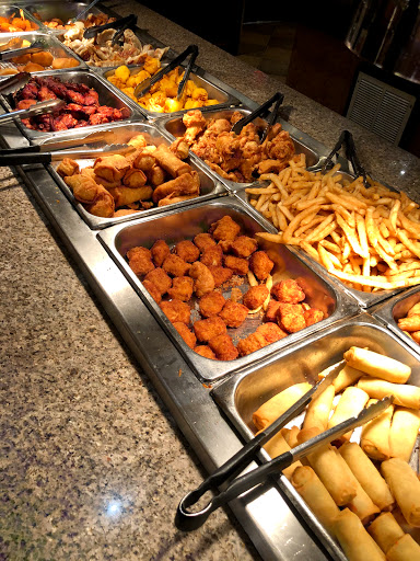 Chinese buffet restaurant, close to home. Decent selection of international foods in addition to your traditional Chinese dishes, so there seems to be a little of something for everyone. Sushi is available as part of the buffet for both lunch and dinner (with wider selection available at dinner), and they have the sweetest oysters (on the half shell) which are almost worth the visit by themselves. Seafood is always among the options, including numerous shrimp dishes and mixed seafood dishes, and crab (blue crab, and snow crab when in season), Cajun style crawdads, and even frog legs (which really do taste kinda like chicken). There is also a Mongolian stir-fry (to order) station as well, though I havent tried that myself. A dessert bar, cakes, and ice cream available to top things off. Recent physical upgrades include new tables. Theres also a koi pond in the lobby where kids can feed the fish while waiting. Busiest Friday and Saturday nights.