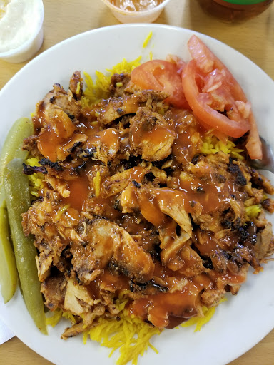 Lovely family atmosphere. The owner saw I was new and came over to ask me how I liked my food. Good number of Middle Eastern diners eating lunch when I arrived which is always a good sign. My mixed Sharma plate was tasty and served with rice and vermicelli, pickles and tomatoes. Both meats were good but the chicken was better than the beef (personal preference) Lovely traditionally brewed Turkish coffee topped off the lunch. Service was prompt and courteous.