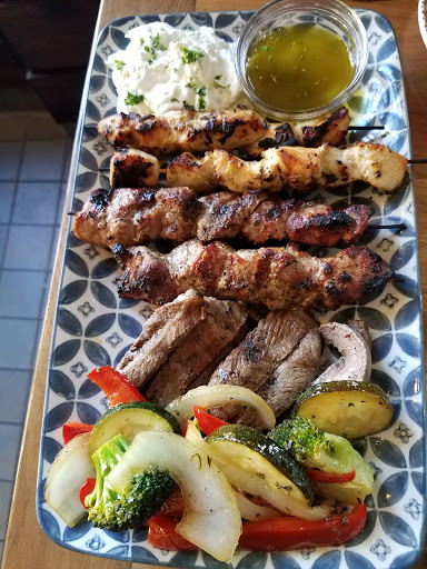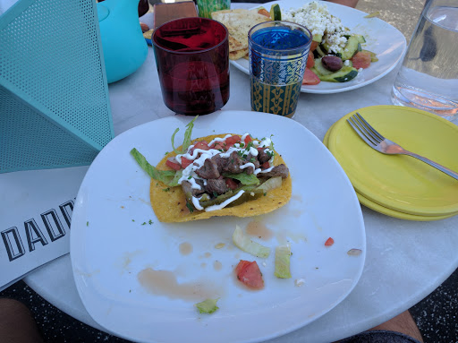 Very interesting restaurant with a very cool vibe. Me and the boyf shared a sweet potato fries with honey and feta appetizer. At first it sounded gross but reviews recommended and it was great! The honey definitely works well with the feta. We also shared the meat platter and the lamb was so bomb, I thought it was beef! I usually prefer not to eat lamb because of the gaminess but it was grilled perfection. The pork was awesome too. The chicken I could do without, it was kinda dry, but not too bad. I also got the fig vodka with stuff olives and it was nice and strong. I usually take my martinis extra extra dry with just regular ol olives but this was a nice new drink. Would definitely come again even just for the grilled lamb.