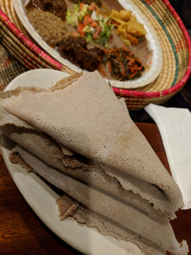 A solid 4-star experience. The best Ethiopian food that Ive ever had. We ordered the lamb tibs, the special kitfo, and the veggie special. The lamb and the kitfo were great, but the veggies were off the chart delicious. The injeera was perfect. Slightly sour, light, and spongy. The service was perfect. Our waiter was helpful, attentive, friendly, and let us know that we could buy honey wine from across the street at Red Sea Grocery to have with our dinner. Highly recommended. We will be back!