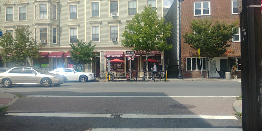 Im selfishly reluctant to write a review in the event that itll start drawing too many people here. Its certainly a gem hidden amongst all the coffee houses in the Boston area. Tables are nicely spaced apart, decor is clean and artsy, and coffee / food are tasty. I spent most of Sunday here catching up on work, and the place was never more than a third occupied. Only thing Id like more is bigger portion size - my turkey jerk panini had only one or two slices of turkey, which I thought was too few for the price.