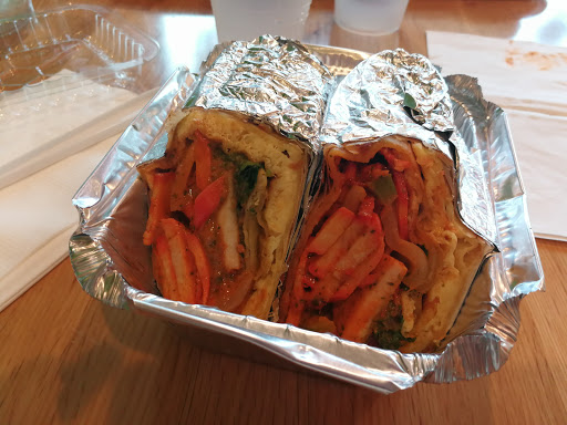 Meat momos have excellent resilient texture on the outside, generous juicy flavorful filling on the inside, and delicious hearty tomato-based sauce. Veggie momos were more bland decent overall. Kathi rolls are lovely, although the crispy chicken one needs to be eaten immediately unless you like your crispy chicken soggy. Mango lassi is good enough to make me try to clean out the plastic cup with my tongue.
