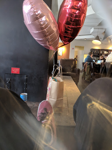 Staff is very friendly and efficient! Large space with outdoor seating options! Free WiFi, fireplace, lazy chairs, high tops, and very open space overall. The atmosphere in the mornings is very young professional/college student-esque