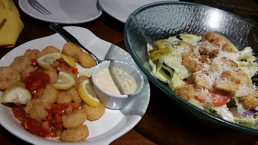 Calamari was hard and no color...nothing else came with it except ranch and marinara. Tasted freezer burnt...salad was smaller than it used to be and salad dressing was not as good. Lobster ravioli so not worth the money. Chicken and shrimp carbonate was fair to ok. Will not be returning.