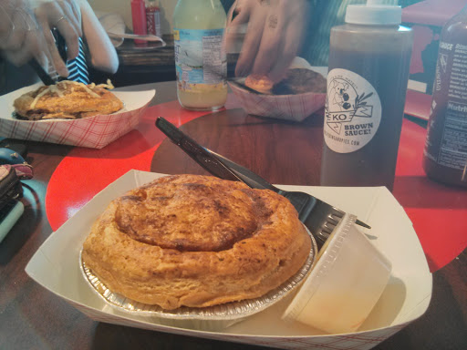 Their meat pies are so good! But be aware: there are only a few seats available. Definitely a hole in the wall. But their decor is so cute, and the food is fantastic without breaking my bank, and they even have vegetarian available. Would definitely go back.