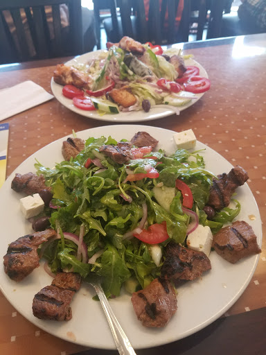 Excellent food! I ordered the chicken kabob platter and my husband had a gyro. The chicken kabob came with two huge portions of rice and a rice/veggie medley, as well as a spinach side that was delicious and fresh baked bread. Portions were huge; prices reasonable. This is not a fancy restaurant but what they lack in atmosphere they make up for in the quality and taste of the food.