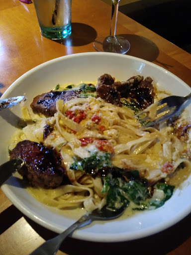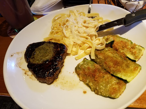 We had Pam as our server tonite. She was fantastic and I would highly recommend anyone visit this particular Olive Garden to experience her service. She took time to make sure our mealtime was great. She catered to our needs down to the smallest detail, such as bringing my water with lemon and my boyfriends with no ice. She patiently explained her favorite meal, the Gorgonzola and Steak with Romano Alfredo and the different steak preparations. She came back with extra salad when we asked. The food came out in a timely manner. She did all of this despite the fact that it was Veterans Day and my boyfriend got a free meal out of it! The food was delicious. I was surprised at how good the Alfredo was, especially compared to my last insipid Alfredo experience at Bertuccis.The freshly grated Romano was so creamy! I was very happy with my visit and I am thankful for the yummy menu with great value. I was only sad she took the bill fold away before I could slip in a few extra tip dollars, well-deserved!