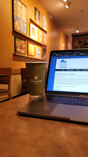 Standard Panera food and drink. It can get busy and they do limit the use of wifi during peak times.