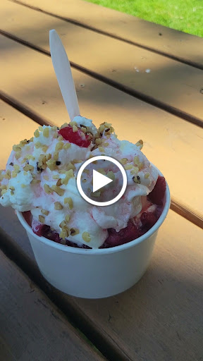Nice field behind with picnic tables to enjoy the wonderful homemade icecream