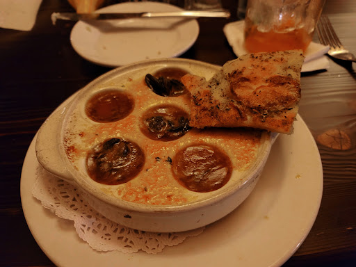 We visited this restaurant for the first time. The service was pretty good, the bread they brought out was hard. We enjoyed the salads, but we wish it had croutons, you should get your dressing on the side, they are very generous.The meals we had was chicken parm and chicken Alfredo with shrimp. The chicken parm was delicious, biggest piece of chicken we have ever seen. Alfredo was just okay. Prices were kinda steep. Dining room was clean, and well kept. We had trouble reading the menu, since we dont speak Italian. Bathroom was well kept, but very small. Theres a bar located in restaurant, and they were loud. All in all, I would recommend this restaurant, cause no place is perfect, and the food is good.