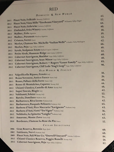 Good food overall - the highly recommended pork chop was a little bland but overall very tender and juicy. Small plates aka appetizers were excellent. Not quite 5 stars - yes Im picky - but 4+ Ill definitely be back. Justin cab (Paso Robles!!!) and Chianti Classico half bottles a nice surprise.
