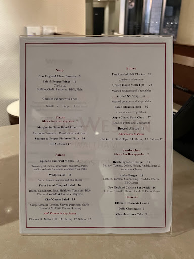 Im quite curious as to why the Westin decided to have a "Burger Bistro" as their main restaurant, which seems to conflict a bit with their glimmering blue glass hotel landmark visible from 128. My company loves using the hotel ballrooms for meetings and firm wide trainings since parking is free and its a relatively more accessible location than crowding everyone into Boston. Maybe they are going for the gourmet burger image like a Five Napkin? Anyway I wasnt in the mood for a burger while eating with some co-workers so I just ordered a side salad and their chili. My colleagues ordered the largest looking burger and a veggie burger. They looked tasty enough and the fries looked normal. I feel like Ive been on such a burger kick lately that its difficult to impress me with my new gold standard (Black Iron Burger). The server seemed a bit confused at some of our questions but he placed the orders in. We sat near the windows and quite honestly they are super drafty! I felt a chill the entire time from the lack of insulation. We had a great view of the I-95 afternoon traffic. During lunch on a Thursday there were only a few tables occupied. I cant imagine anyone ever coming here specifically for the restaurant. Its more a convenience factor if you are already here. The chili helped warm me up from the polar vortex chill and the salad was just a plain side to fulfill my nutritional needs.