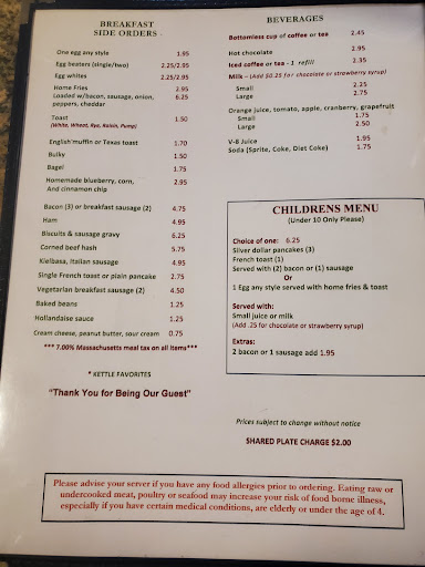 My mission for the 2012 motorcycle season was to find the best breakfast hash in and around the Lowell, MA area. I’ve travelled almost 100 miles for breakfast, but I love hash! I call it my "Hankerin for Hash" motorcycle tour. It’s been mostly diners and I usually sit at the counter. The Country Kettle in West Boylston, MA is a nice place – small, but it has good sized counter seats. The breakfast was very good, but the hash was just average. There were some really interesting seafood selections on the breakfast menu! (I love seafood too!) Gotta go back again! And its a great riding area. Check out the old stone church just down the road on the reservoir.