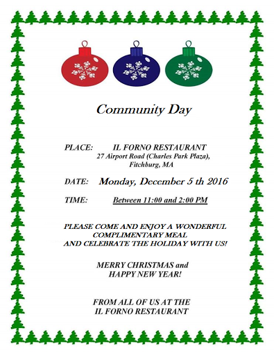 We had an amazing experience at Il Forno in Wesr Boylston today. We brought individuals with special needs to the restaurant for lunch and our waitress, Jamie, went out of her way to accommodate our needs. At the end of dinner the owner himself came to our table to check on our experience. Great service & delicious food...highly recommended!