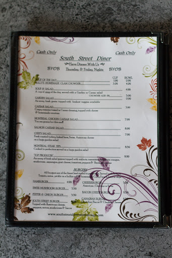 Definitely a local place to go. This restaurant has been in business for over 20 years, perhaps much more. Newly renovated a couple years ago and well worth the visit. Breakfast dinner and lunch served anytime all day that they are open. You can work the overnight shift go there at 7 in the morning and get a full dinner or you can walk in at 2 in the afternoon and get anything off the breakfast menu no problem. Primarily a cash-only business run by a local couple with local Waiters and servers this place is a local landmark and almost everyone in the area knows the name and the menu of this restaurant. Both owners are often seen in the restaurant helping the serving staff and helping things go smoothly. The prices are very reasonable the food is fresh and cooked on premises with local homemade recipes. The male owner of the husband-and-wife team is one of the primary colors and its seeing quite often coming to the table asking how things are and if you can do anything better for the customer. A competitor to this restaurant is immediately next door with a higher price range for breakfasts and meals and far fewer customers as it seems in comparison to be a much less fun place to go. South Street Diner has long been on my and my familys to go list when thinking about an early-morning weekend meal.