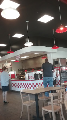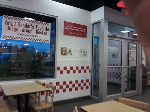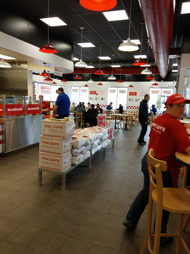 This Five Guys is always super quick, friendly, and clean. If youve never eaten Five Guys before (and you like meat), go there now! Best burgers and dogs that you didnt make yourself, and for some of you, its even better than what you can make. All the toppings are free, including extra of anything, and they are always super generous with fries, assuming youre not one of those weirdos who complains about too many fries. Apparently this is a thing, which blows my mind. TL;DR: Five guys is amazing, and this one is fantastic. Youll only regret it if you think that too much food is a bad thing, which totally makes you a weirdo.