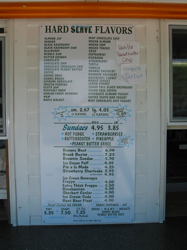 Good ice cream in both soft and hard serve options. Tastes like real ice cream with good serving sizes. You will not be disappointed.