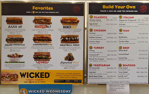 Awesome sandwiches created by you. Rewards club is great. They have some great items allowing you to create a sandwich for any craving. Clean place inside and friendly staff.