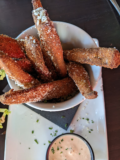Atmosphere so cozy (my wife stole my phone) , steak tips and Eggplant Fries were amazing. Overall .....great meal and looking out window at the snow...happy memories of my hometown!
