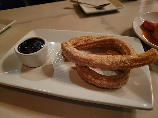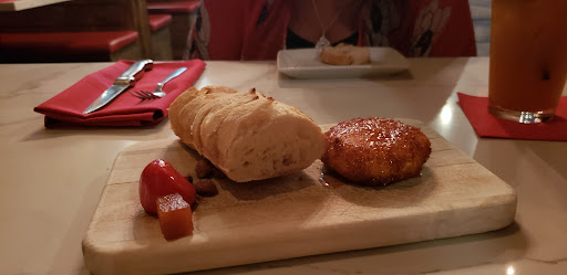 This place has 3 separated dining areas, the first one when you walk in, with a big bar, wooden floor and brick wall, more of a comfy atmosphere. The one to the right of this room is very modern, simple design with vivid colors against clean white colors. The last room is the one all the way back, with tables and big booth seating, dark room with soft reddish light, making it more cozy and romantic. As it was our first time dining there, we had some questions and our waiter, Brian, was very good at explaining everything, and also gave really great recommendation, from drinks to dishes and portions. And on top of that, he was very personable, friendly, and patient with us. Service is such an important part of the dining experience, and they certainly got this part down. They have several kinds of Sangria, which I thought was great. It seems like all of their Sangria have sweet flavors, which is good for some, but not so great for those who dont like sweet, fruity drinks. I enjoyed them very much. For food, we went with "The Bocado Experience" which is like a tasting menu of tapas and other dishes they offer. You get to choose meats & cheeses, tapas plates, a large plate entrée or paella and dessert. Everything was quite tasty and nice, except for the dessert. Read my full review of this restaurant and food on my food blog, foodlovergirl