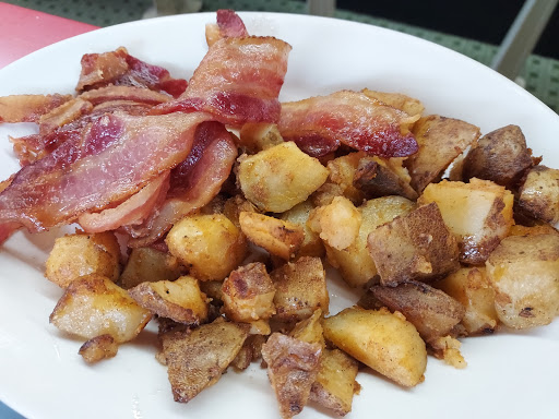 The foodis always good and will serve however you prefer can split a big bully breakfast with two or more , is family run and will bend over backwards to please you a great place to strike up a conversation with practically any one ,