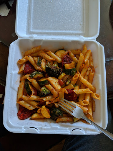 They were having a bridal party so when we arrived there were only 6 tables. 3 were reserved for reservations. There were 2 waitstaff, 2 cooks and maybe an owner (older woman who just checked on people and staff). The weird part was that none on the remaining six tables came in at the same time yet the menus were not available. What would have happened if there was no party? Order more menu for every seat you have. For having a small staff the food was cooked and brought out timely. The staff the pleasant. I got my own pitcher of water so I was happy. The chicken penne broccoli was in the bland side. The cream sauce was watery. However I have no complaints. The antipasto was very tasty but I would have liked less dressing. Hubby ordered the special steak. Presentation was great. Flavor was great. It was slightly overcooked but Im not sure if it was due to the steak being placed on a skillet and continued to cook while hubby was distracted or the chef over cooked it. The portion size was crazy large. It did have lots of fat around the edges. The cannolis were delicious and stuffed to order.