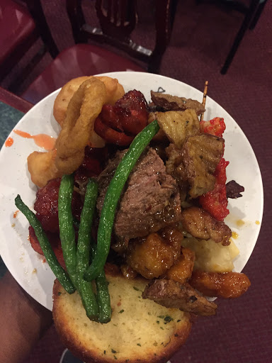 Last nights food still sitting there at 3 in the afternoon..it looked like it had been in the pan for 12 hours, just looks gross and they have rats. Baby rats running all over the dining area. My son showed me one crawling up the booth a few seats away. Never again. How do they even have a license to sell food??