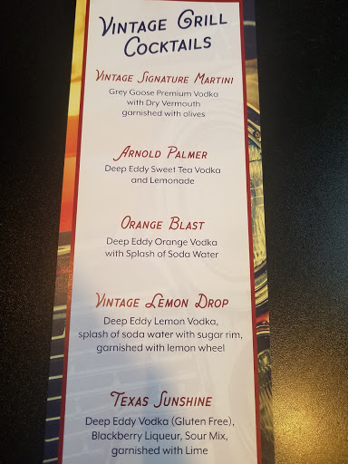 Ive been to vintage for breakfast, lunch, and dinner, and I have even had it delivered via foodler. I have yet to get anything I do not like. The food is fresh, the staff is pleasant and always friendly. They have a great bar and atmosphere as well. The car theme really fits well. I would point out that the pizzas here are especially delicious and offer your taste buds the pleasure they deserve.