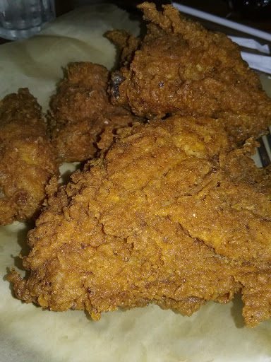 Had *great* service here yesterday. Didnt catch the (young male) waiters name, but he took very good care of our party of four. And this was when the restaurant was pretty full, on a Saturday at midday. Food was good. The rainbow trout was excellent. The homemade chicken salad was good but a little plain (Ill get something else next time). The cornbread muffins that come with the meal were dry, though. Our waiter brought us biscuits instead, which were excellent (hot, moist, buttery). (I mentioned at the register that the muffins were dry, and the cashier told the manager, so maybe that was something theyll address.) The decor was OK. Old-Americana style. Very pleasant place. Well go back.