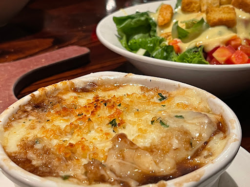 Really Great Steaks and Much More. First time at this chain has put this on my list of great steaks. Had a new dish called Ranchers Sirloin a 12oz strip topped with bacon, sunny side up egg & bordelaise which was amazing loaded with flavors off the chart Great. The wife had the 12oz boneless Rib-eye cooked to perfection with juices flowing. Tried there new soup a Asiago Cheddar broccoli which was very good. A side of a jumbo sweet tater loaded with butter and cinnamon made for a filling meal. The bread the bring out piping hot multi-grain is the very best of any eating spot. Over all Ill be back many time to try those great lunch combo, looking forward to the shaved prime rib sandwich. Special shout out to Donna a really on top of her game waitress they should be proud to have as a team member,,,,THANKS DONNA