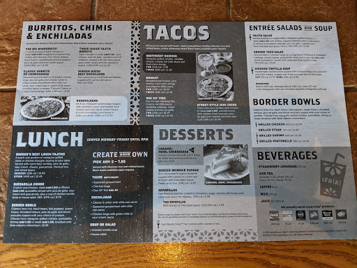 The choices were very limited for a vegetarian and what I got for lunch was not appealing. Even the chips were not what it used to be. This is the third time Ive been to On the Border recently and each time we came home disappointed.