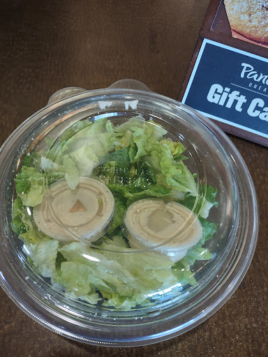 This was first time at this Panera. I love Panera Bread, however, this particular one did not meet my expectations. The salads in other Paneras have mixture of greens and a decent amount of fresh vegetables. Here it was mainly iceberg and a few Romain pieces; which made the salad taste way different and not as good. The cucumbers were not fresh, and tasted sour. The tomatoes did not seem fresh either, and seemed to be sitting for a while. The flatbread sandwich looked quite sloppy the way it was put together. Staff was nice, place was clean. I love Panera, but this one broke my heart as I was really looking forward to my u pick 2 meal.