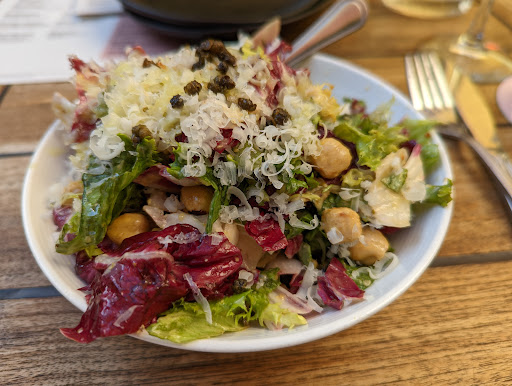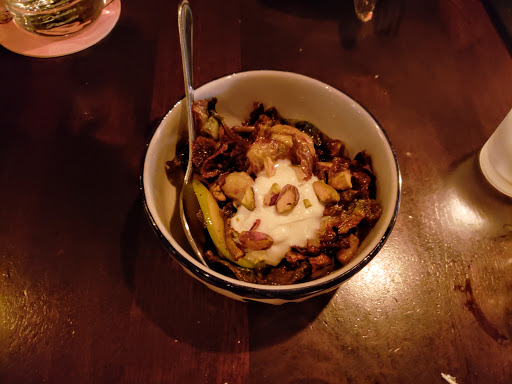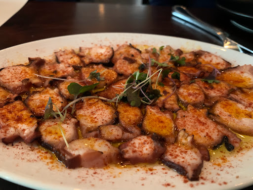 My partner and I landed here after a long day of travel from VT. The food, ambiance, and service was exactly what we needed. After ordering a carafe of white- we had the octopus tapas which was seriously amazing. Fresh, clean and meaty, very satisfying. Next, we were served the cauliflower with pine nuts and the patatas bravas- a dish very close to Rachels heart. Cauliflower was rich and light at the same time, filling and scrumptious! Rachel most remembered food from her time studying in Spain- the patatas bravas is something Ive even tried replicating at home for us. Aventura knocked it out of the park! Brought tears to her eyes and we gobbled down every last bite and dumped the last bits of cauliflower in the PB sauce to soak it all up. Lastly, we were served the bacon wrapped chorizo stuffed dates. Dank and delicious! Sweet and salty and so so good. If youre in Ann Arbor- get to Aventura. They know how to do it up right.